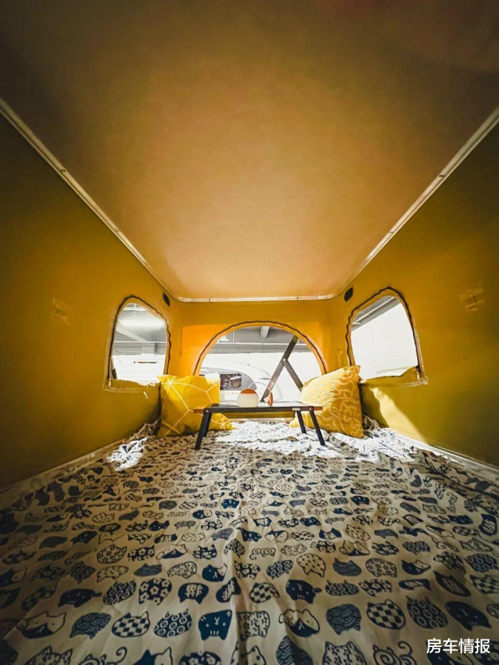10万价位的房车,内部面积相对比较小也就4-5平米。放一张床、一个小桌子、一个简易厨房,基本就满了。住三天是浪漫,住三个月就是修行。